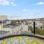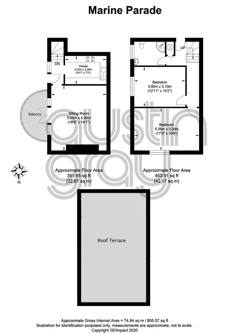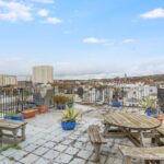 An impressive two double bedroomed split level flat for sale with a share of the freehold, no onward chain and a large balustraded roof terrace and small balcony.