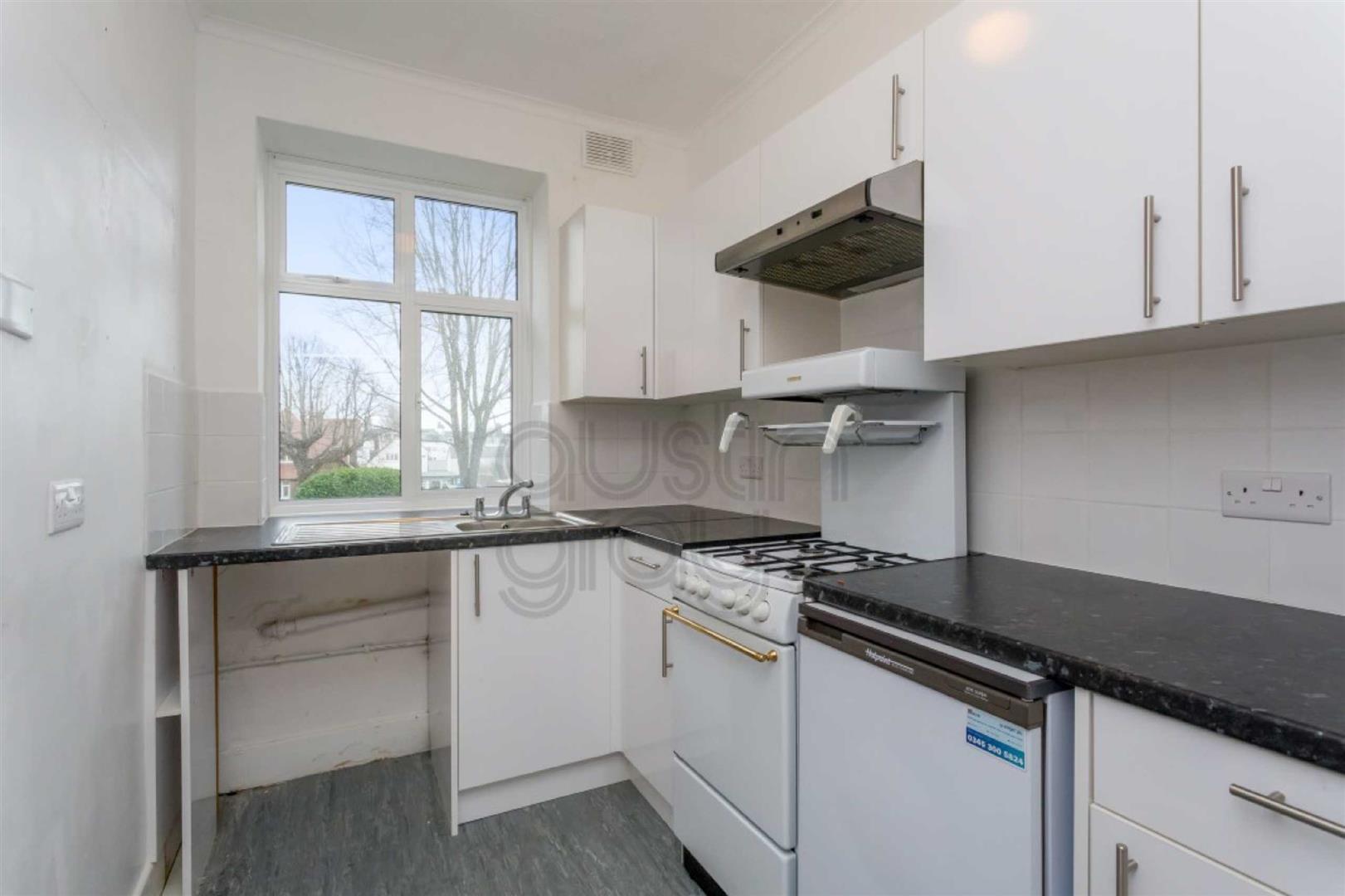 The kitchen has working surfaces with cupboards both above and below and standing space for appliances, window overlooks the communal gardens below in a southerly direction.