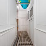 Through well a maintained communal hallway the front door opens into the entrance hall which has a feature part glazed floor. There is a large utility cupboard with space and plumbing for washing machine. A spacious and fully sound proofed living room with panelling, high ceilings and arched windows adding character overlooks the front and a double bedroom next door also faces the front. An internal bathroom/WC has a separate shower with a freestanding bath and the main bedroom to the rear has floor to ceiling fitted storage. The kitchen has ample cupboard and drawer storage and integrated appliances and is at the rear of the flat.