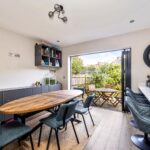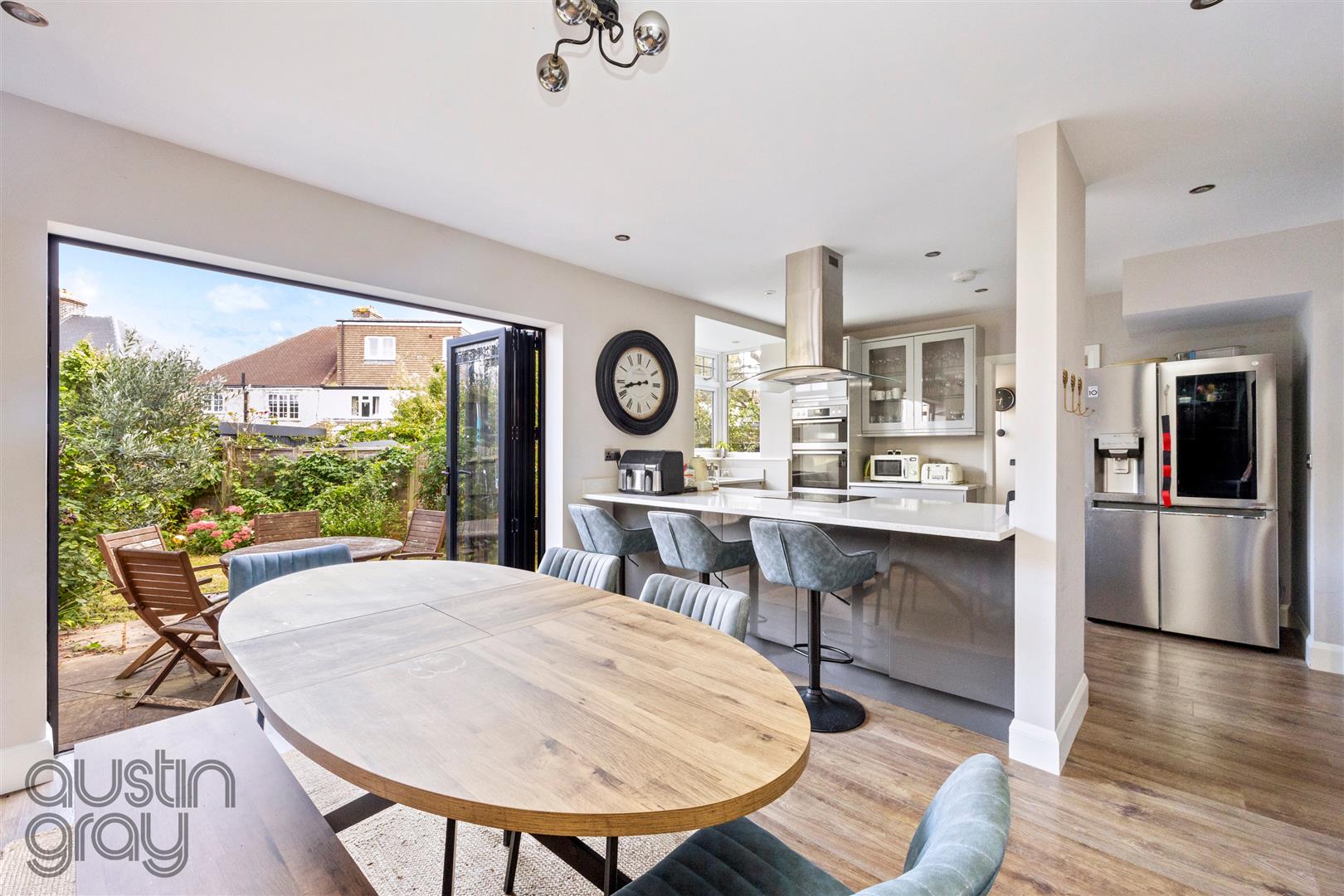 On the ground floor at the is a bay fronted sitting room, whilst behind is a spacious open plan kitchen / dining room with integrated appliances and bi-folding doors that allow access out to the rear garden that is arranged on two sides. A former garage now provides an area of storage to the front whilst retaining the up and over door and at the rear a utility room is to be found alongside a separate shower room / WC.