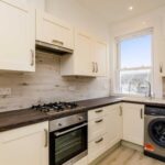 At the front of the flat is an open plan lounge and kitchen with a double glazed bay window, and radiator. Newly fitted kitchen with a range of work surfaces with cupboard and drawer storage both above and below, four ring gas hob with oven beneath and washing machine, sink and double glazed window to the front.