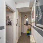 A glazed front door opens into an L-shaped entrance hall that has a night storage heater, telephone entry system, wired smoke alarm and airing cupboard housing hot water cylinder with storage below.