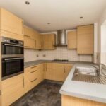 At the rear of the house is a modern kitchen with roll edge work surfaces to 3 walls with a range of cupboard and drawer storage above and below, integrated appliances, 5 five ring gas hob and extractor hood above, integrated double oven space and plumbing for washing machine and dishwasher, space for fridge/freezer and a window overlooks the patio garden.