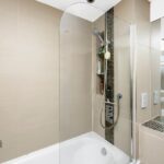 Entering through the communal entrance hall with its entryphone system, stairs rise to the first floor landing where the flat’s front door opens into a small vestibule with further stairs that rise to half landing where a modern bathroom/WC with underfloor heating is to be found at the rear flat. Further stairs rise to the second floor where enjoying rooftop views is a spacious open plan lounge / kitchen. A well-equipped kitchen boasts a wealth of integrated appliances including its oven, hob, microwave, washing machine, dishwasher, and fridge/freezer, along with a wealth of storage. At the front of the flats are two bedrooms.