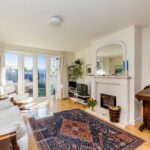 At the rear of the house is a fitted kitchen with a range of work surfaces providing a comprehensive range of cupboard storage both above and below, one and a half bowl stainless steel sink, dishwasher, five ring gas range master and extractor above, standing space for fridge/freezer, dual aspect with double glazed windows and far-reaching views, ceramic tiled floor and an archway that leads through to the dining room with engineered oak flooring, radiator, UPVC double glazed sliding doors provide access out to a raised decked and balustraded balcony which encompasses rooftop views.
