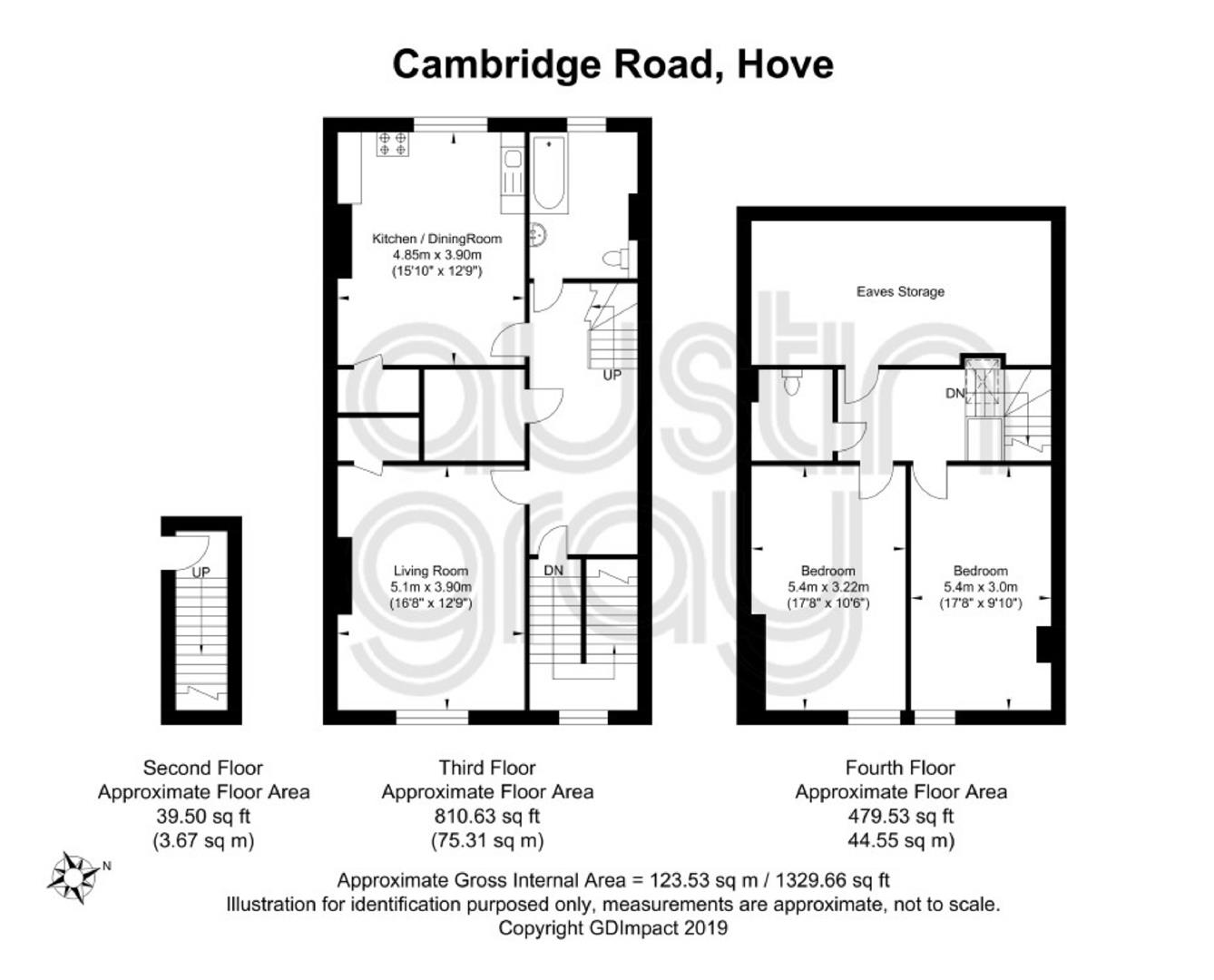 GUIDE PRICE £325,000 - £350,000. A two double bedroom maisonette measuring 123 sq.mtrs. / 1329 sq.ft. arranged over the 3rd & 4th floors and offered for sale with immediate vacant possession, no onward chain and in need of general modernisation and updating.Cambridge Road lies adjacent to Western Road where the numerous bars, restaurants, shops and other entertainments are to be found. Both Brighton and Hove mainline stations are easily accessible providing Northbound commuter links with London / The City, as well as its East and Westbound connections. Brighton seafront is a short stroll away.