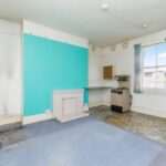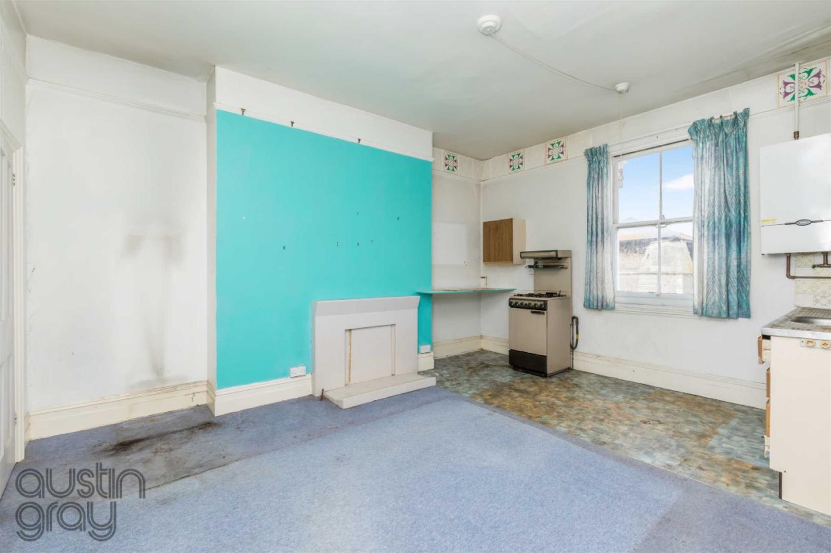 At the front of the property is a large kitchen/dining room that is in need of refurbishment, currently there is only a sink and wall mounted boiler. Sash window to the front and storage cupboard.
