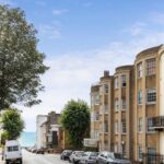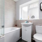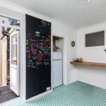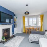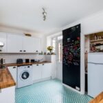 Through the communal hallway stairs lead to the top floor where the front door opens into the entrance hall. The living/dining room has oblique sea views from the bay window at the front. The bedroom has fitted wardrobes to one wall and the modern bathroom/WC offers a bath with a shower above, wash basin with storage below and window to the side. The well-equipped kitchen has ample cupboard storage and space for a washing machine and fridge/freezer. A full-length chalk board adds a fun and useful element to the kitchen with a door leading out to the fire escape.