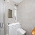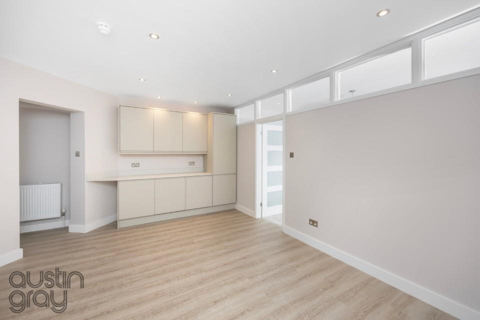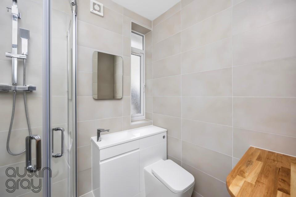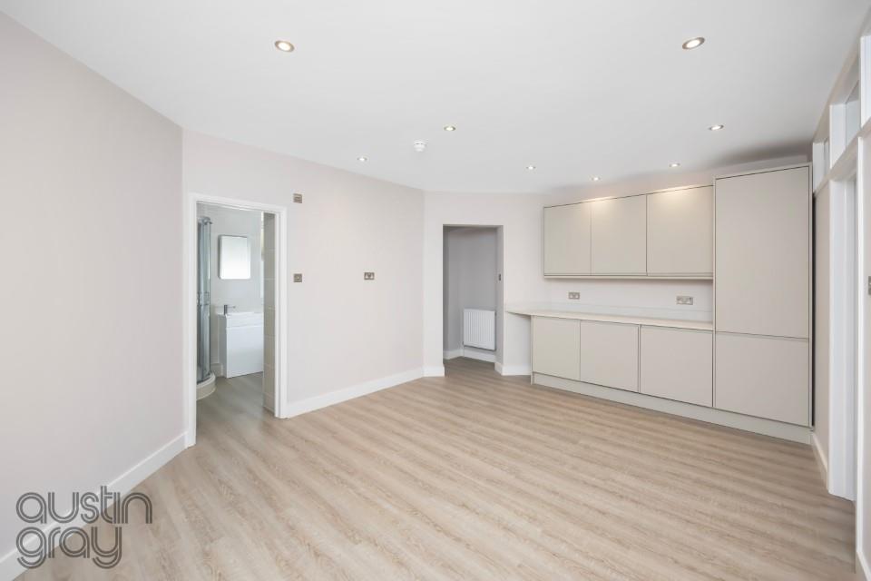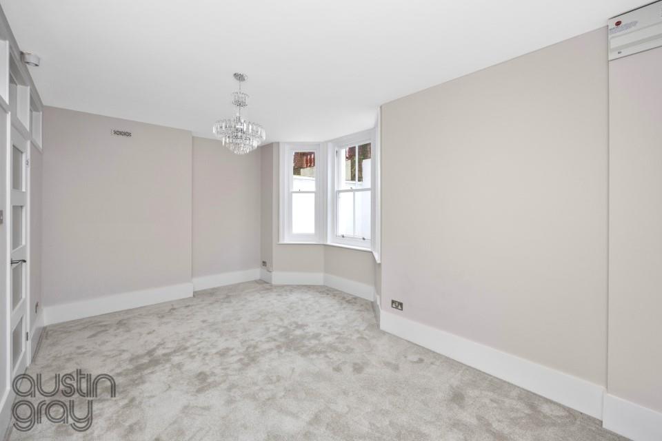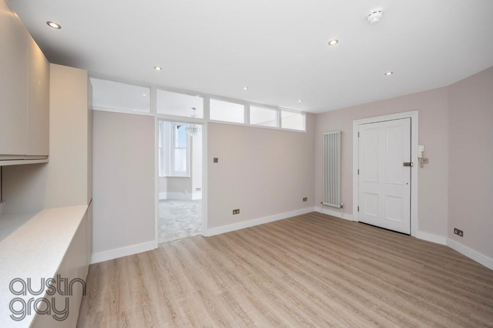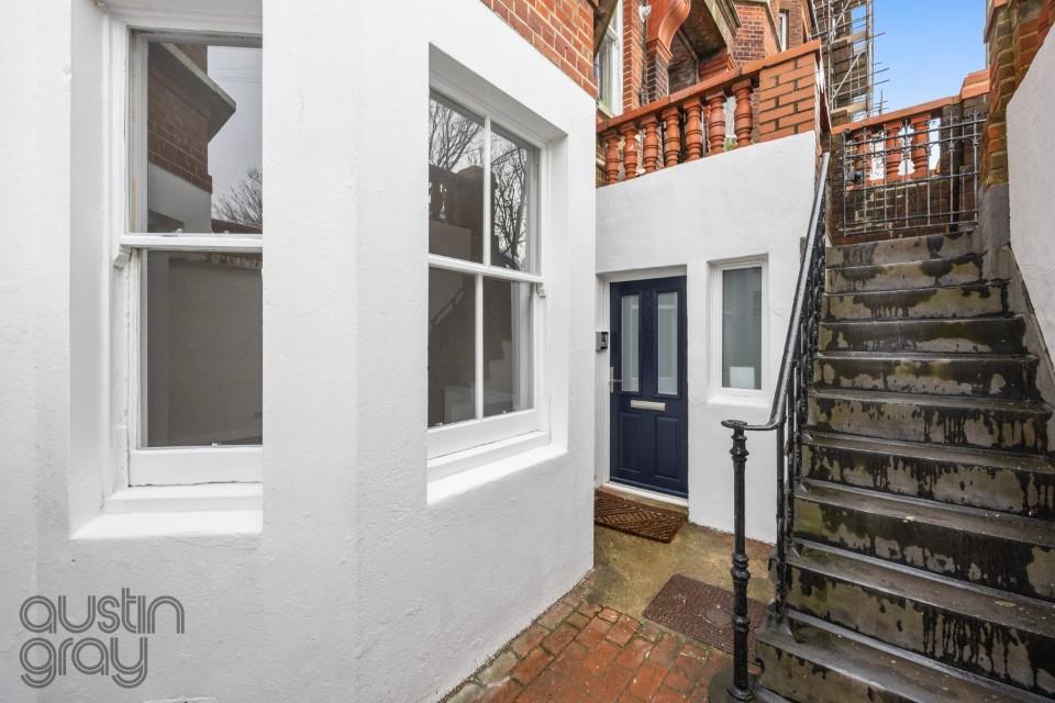 Steps lead down to Flat B to the lower ground floor to a communal front door that leads to Flat A and B. There is a shared bike store inside the entrance in addition to access to the flat’s front private outside space. Flat B’s front door opens into the spacious living room with a spacious bedroom to the front. The new shower room/WC with a window to the rear is accessed from the living area. The beautifully fitted kitchen with integrated appliances leads from the living room and in turn has a door that leads out to the patio with further steps leading up to the paved garden ideal for enjoying al fresco dining in the summer months.