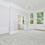 To the front of the flat is a beautiful lounge/dining room with a feature sash bay window which enjoys a southerly aspect with high skirtings, picture rails, ceiling cornicing and mouldings further complemented by a tiled fireplace.