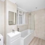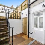 Steps lead down to Flat A to the lower ground floor to a communal front door that leads to Flat A and B. There is a shared bike store inside the entrance. The front door opens into an entrance hall where a newly fitted kitchen with integrated appliances is at the rear overlooking the patio and a new bathroom/WC is also at the rear, the washing machine is housed here. From the kitchen a door leads out to the pretty patio area and steps lead up to a larger paved area, ideal for entertaining in the warmer sunnier months.