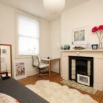 Original exposed wood floor, large walk in bay, this bright double bedroom has character including sash style windows, coving and original fireplace, ample space for double bed and free standing furniture, radiator.