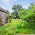 South facing rear garden being mainly laid to lawn with mature trees and shrubs.
