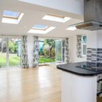 Pair of bi-folding double glazed doors overlook and lead out to the newly turfed rear garden, Velux windows above in addition to UPVC double glazed window to one side, radiator, door into