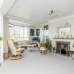Enjoying an elevated and dual aspect is the spacious lounge/dining room, which principally enjoys views in a south-westerly and north-westerly direction with radiators beneath, original marble fireplace.