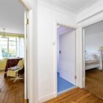 The flat can be accessed from the northern entrance and through the well maintained communal hallway. The flats front door which is electric opens into the entrance hall. The accommodation is spacious and has four double bedrooms all leading from the long hallway. There have been adaptions made to the bathrooms to accommodate the current owner’s disabilities and can be re designed to suit. The large through living/dining room has windows to both ends with Plantation shutters providing privacy. The well fitted kitchen has an open hatch to the dining room and ample cupboard and drawer storage in the kitchen itself and has a back door that leads out to the rear of the building out to the beautiful communal gardens.