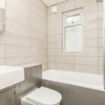 Cloakroom. Low-level WC wash basin radiator and window to the side.
