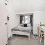 Behind is another double bedroom with sash window to rear that enjoys far-reaching roof top views, radiator, fireplace and fitted storage.