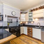 The kitchen has black granite working surfaces, one and a half bowl sink, a wealth of cupboard storage above and below, space and plumbing for dishwasher, five ring gas range, integrated American style fridge/freezer, wraparound large breakfast bar, window overlooking the courtyard.