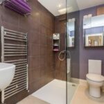 Shower room/WC has walk in large shower, low-level WC, wash basin, towel radiator, cabinet, extractor fan, doors leading to the kitchen and hall.