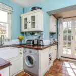 Quarry tiled floor, radiator, range of bespoke fitted units, butler sink, space and plumbing for washing machine, gas range and additional appliance standing space and plumbing for washing machine, dual aspect with window to the side, pair of glazed French doors overlooking and leading out to the rear garden.