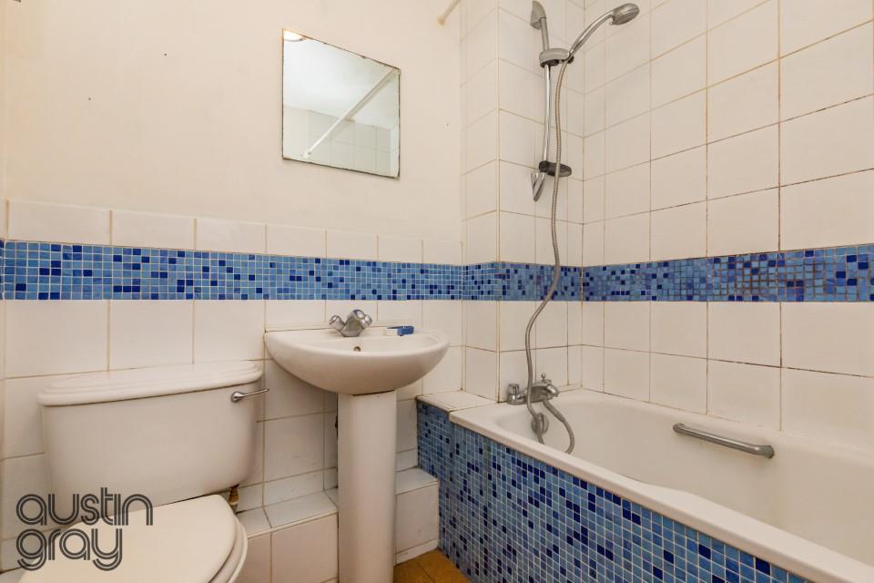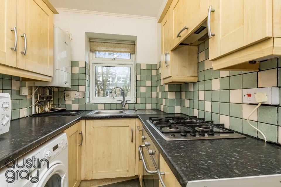 This raised ground floor flat offers the opportunity to put your own stamp on it and create a lovely home which is in a very convenient location. There is ample storage in the hall and a spacious living room has a westerly aspect and the kitchen has a range of units, space and plumbing for washing machine with a wall mounted boiler and window to the south and the double bedroom has a fitted wardrobe. The bathroom/WC has a shower attachment over the bath. To the rear of the block is an unallocated parking space on a first come first serve basis.