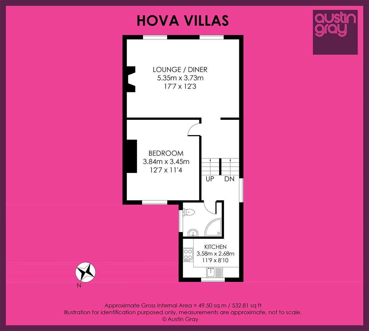 Hova Villas lies adjacent to Church Road where shopping facilities, numerous bars, cafes and shops are to be found. The seafront is a short walk away as is Hove mainline station which is nearby Denmark Villas providing northbound commuters with links to London/The City. Regular bus services run form Church Road providing access into the vibrant city centre.From the communal hallway, your front door opens onto stairs that rise to the half landing at the rear of the flat. A modern fitted kitchen greets you as you enter with a sash window that allows an abundance of light being West facing. A butler sink sits beneath oak surfaces, whilst there is an integrated fridge / freezer, washing machine and standing space for a cooker. Alongside the Kitchen is a modern shower room / W.C. A spacious lounge / diner spans the width of the flat at the front and has a cast iron fireplace and sash windows, and behind is the light and airy double bedroom.