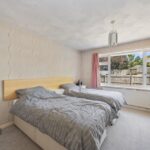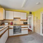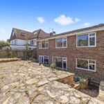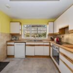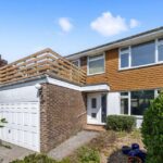 This distinctive 1970s detached family home is a standout amongst a street lined with traditional family homes. Nestling behind mature shrubbery, it offers privacy and character in equal measure. While in need of some modernisation, the property is generous with four bedrooms, two reception rooms, family bathroom, ground floor cloakroom, large integral garage, and a terraced rear garden.Upon entering the front door, you are welcomed into a sizeable entryway that follows through to a spacious dual-aspect living/dining room, featuring large windows and double doors that open onto the rear garden, flooding the space with natural light. A door leads directly into the kitchen, which also has its own access from the front of the house. This thoughtful layout creates a natural sense of flow and convenience. A cloakroom also completes the downstairs accommodation.