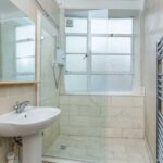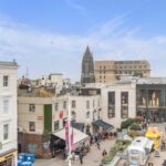 There are three bedrooms, two of which overlooks the Churchill Square shopping mall with rooftop and sea views beyond, and the third enjoys an easterly aspect.