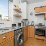 The well-equipped kitchen has work surfaces to two walls with cupboard and drawer storage, stainless steel sink, integrated gas hob, oven and extractor hood above, space and plumbing for washing machine and dishwasher as well as a fridge/freezer, UPVC double glazed tilt and turn window, combination boiler and small breakfast bar.