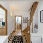 Security phone system allows access through the well maintained communal hall with stairs rising to the second floor landing with front door opening into spacious entrance hall with polished wooden floor, telephone entry system, radiator and wooden stairs rising to upper floor. There is a cloakroom with wash basin.