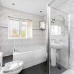 Steps lead up to an enclosed entrance porch which leads into a spacious entrance hall. A bright through lounge/ dining room in turn leads to the modern kitchen/breakfast room which has integrated appliances and a door leading out to the rear garden. A cloakroom is also found on the ground floor. On the first floor are three bedrooms accessed from the spacious landing, two with fitted wardrobes and there is access to the extensive roof space which is boarded with Velux windows to the rear and potentially could provide further accommodation subject to the necessary building and planning permissions required. There are gardens on three sides with the rear being terraced and paved and has gated access to the front. A single garage is at the front with a drive providing off road parking for two vehicles. Council tax band D