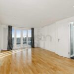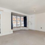 Sash bay window to the front, with glazed door on one side providing access out onto balustraded balcony, fitted storage, radiator.