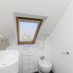 Double shower cubicle, low-level WC washbasin fitted storage, Velux window to the front, radiator.