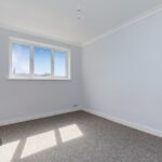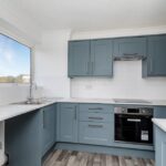 The flat is located on the second floor at the end of the block and has been completely refurbished throughout with a newly fitted kitchen facing the front with dark grey cupboards and drawers complete with oven, hob and extractor hood and space for fridge/freezer. There are new carpets throughout and a modern shower room/WC. One bedroom leads from the entrance hall and the other from the main living room. The spacious living room has sliding patio doors that lead out to the south facing balcony.