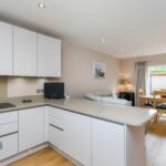 Open plan living/dining/kitchen has bi-folding doors opening out to a small herringbone paved and walled patio garden, whilst the Kitchen at the front of the house has Silestone work surfaces with a wealth of cupboard and drawer storage above and below and integrated appliances with a cupboard housing the Worcester boiler.