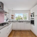 Stairs rise to the first floor and sitting at the front is a cloakroom and a well equipped kitchen / breakfast room with its range of integrated appliances and space for breakfast table and chairs, whilst sitting behind and spanning the width of the house is in lounge / dining room with fitted log burner and folding glazed doors which overlook and lead out onto the landscaped West facing rear garden.