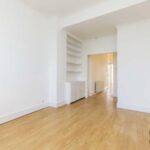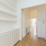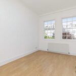 At the rear of the flat is the lounge with a pair of sash windows and radiator beneath and fitted storage.