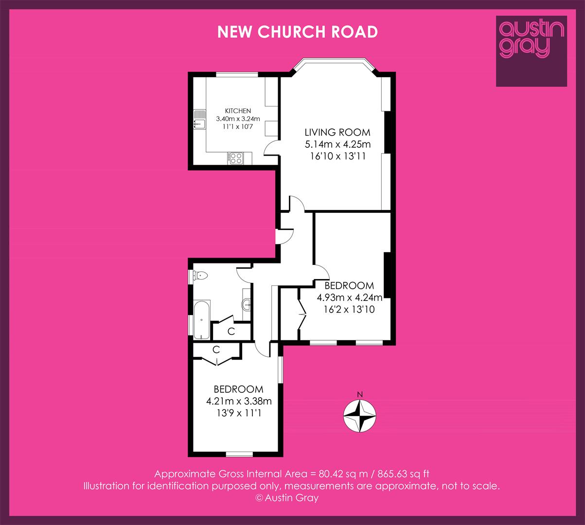 Guide price price £400,000 - £425,000Newly painted, spacious two double bedroom first floor flat measuring 865 sq ft/80 sq m in the popular New Church Road area close to the seafront and promenade and shopping facilities in nearby Church Road. Share of the freehold and no onward chain.