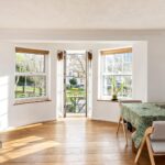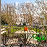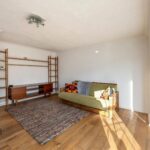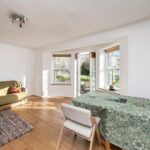 The spacious living room opens directly onto a balcony with sea views, offering space for a small table and chairs – ideal for weekend brunches or evening drinks.