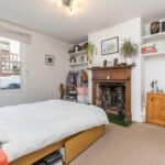 At the rear of the flat is the double bedroom with sash window overlooking the patio garden, chimney breast with tiled hearth and oak surround.