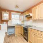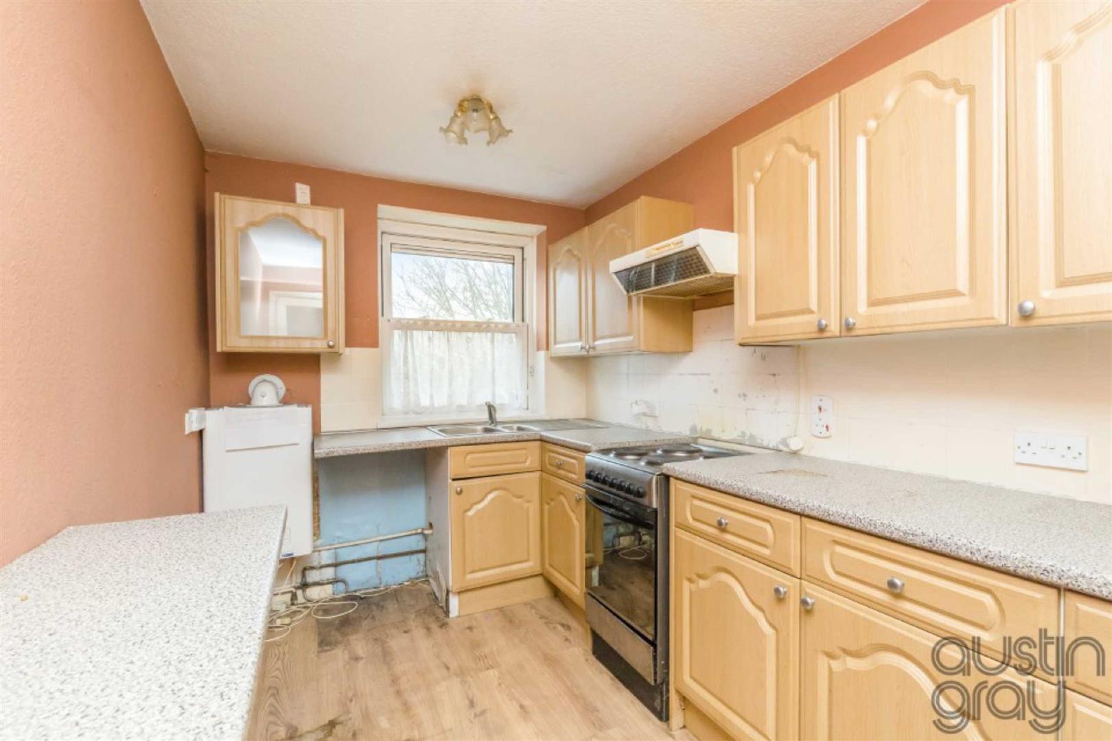Kitchen. Range of working surfaces cupboard storage both above and below, appliance standing space, stainless steel sink with washing machine, wall mounted boiler, double glazed window to the side, radiator.