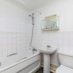 The kitchen/breakfast room has a range of basic units with space for appliances with an electric hob and oven below with extractor hood above, a pair of sash windows overlook the mews below. Standing space for breakfast table and chairs.