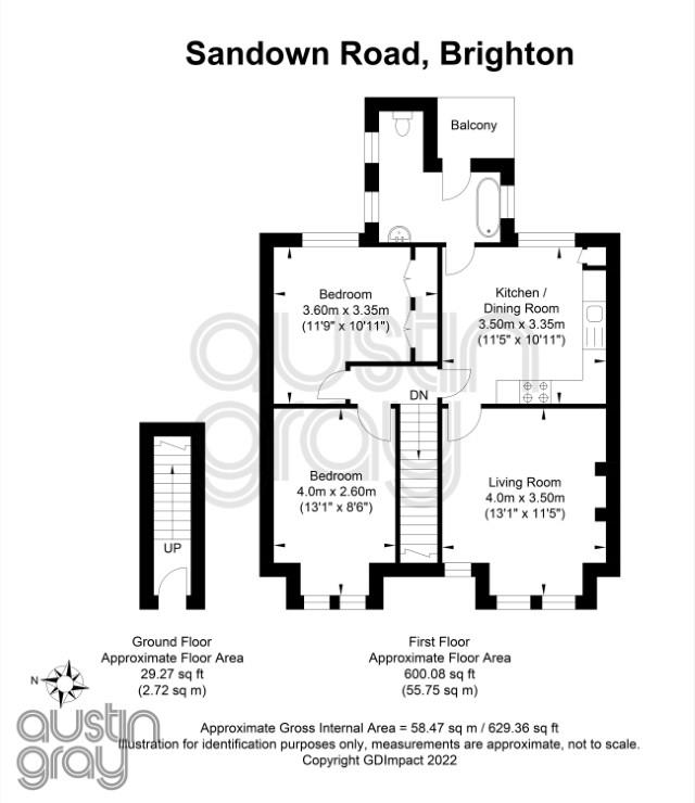 Well-presented, two double bedroom, first floor flat offered for sale in good order throughout with a share of the freehold.Sandown Road lies adjacent to Elm Grove close to Lewes Road where a comprehensive range of shopping facilities are to be found with regular bus services providing access into the vibrant city centre, seafront and promenade. Schools catering for all age groups are well represented within the local area. Brighton mainline station is to be found in Queens Road providing north bound commuter links with London/the city.