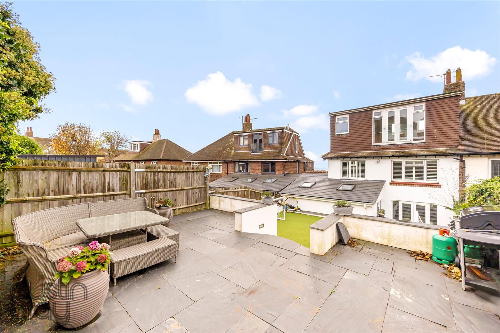 A Stunning extended 1930s semi with standout kerb appeal in a quiet Hove close. Sun-drenched open-plan kitchen/lounge, landscaped garden, four double bedrooms including a luxurious master with en-suite and sea views. Stylish, turnkey family home ready to move into.