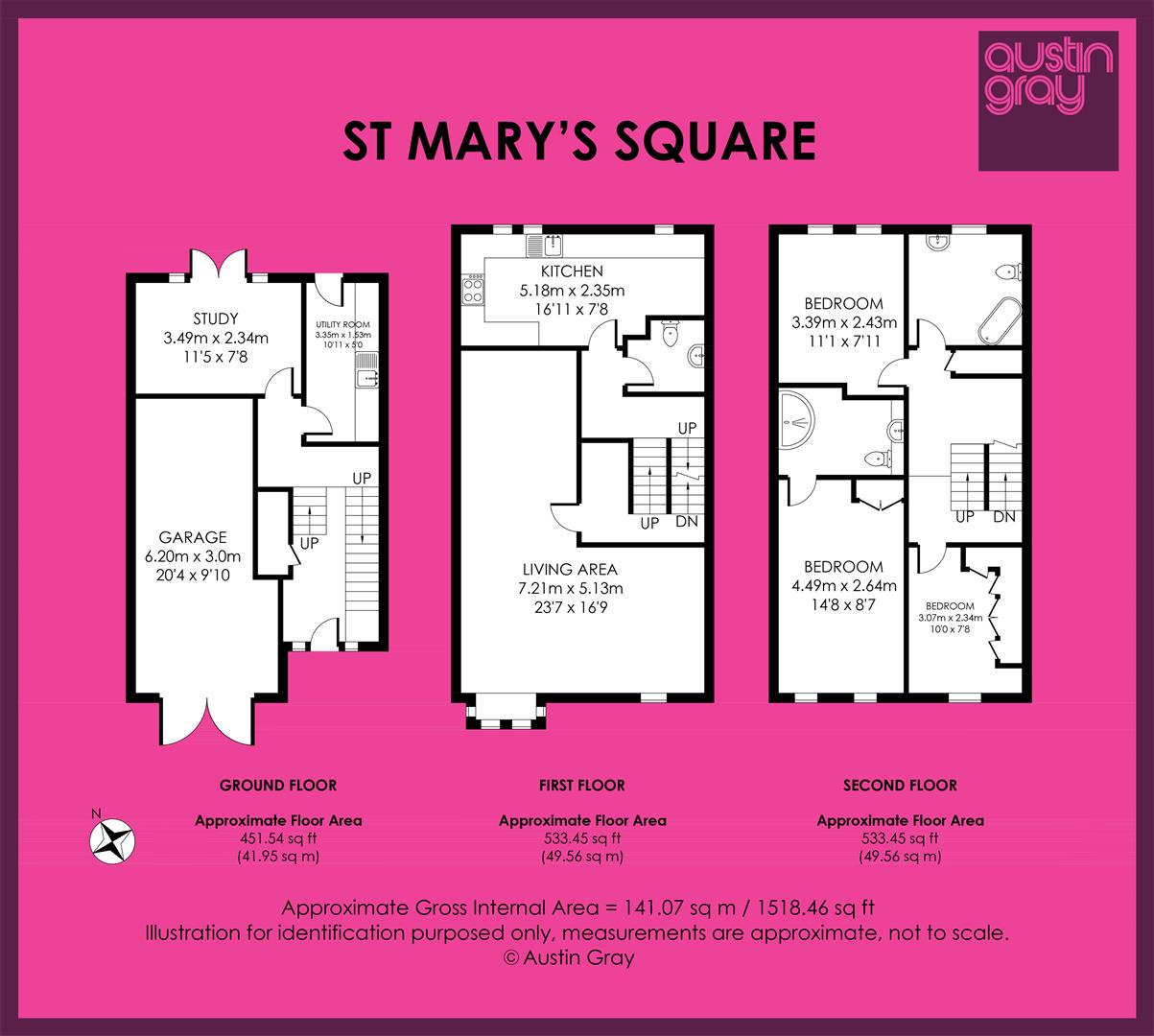 Guide Price £775,000 - £800,000Entering through the secure gated entrance, the private road leads to the driveway of number 10 St Marys Square which provides off-road parking in addition to its large single garage. A front door opens into an entrance hall with stairs that immediately rise to a half landing where bedroom / study is to be found with its full length double glazed doors that overlook and provide access out into the flint walled rear garden, in addition to a utility room which has a range of storage units whilst providing the space and plumbing for appliances and further access out can be gained out to the rear garden.