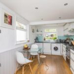 A dual aspect lounge/dining room with an exposed wooden floor has a double-glazed sash window to front with panelling beneath, attractive fireplace with a fitted real flame gas fire, a pair of double glazed French doors allow access out to the landscaped rear garden.