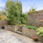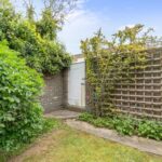 Rear Garden Paved patio leading onto a lawned garden with gated rear access. Mature shrubs, water tap.