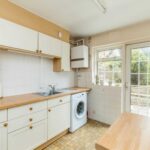 Kitchen has a range of working services with cupboard and drawer storage both above and below, appliance standing space, plumbing for washing machine. Stainless steel sink, wall mounted boiler. Double glazed window and door overlooks and leads out to the rear garden.
