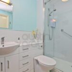 Shower cubicle, wash basin and storage, WC electric heater, pull cord, grab handles.